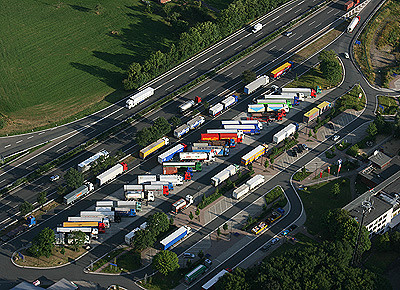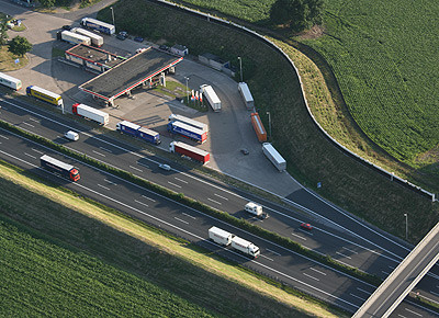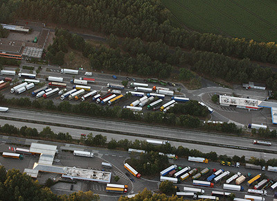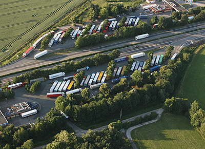 von 13: Die tägliche langwierige Parkplatzsuche ist für die meisten Fernfahrer bittere Realität. Ralph Bode, Mitbetreiber des Internetforums www.ein-herz-fuer-lkw.de, war als ehemaliger Fahrer selbst betroffen und will nun Politiker zum Handeln bewegen. Um die Situation zu dokumentieren, scheute Bode keine Mühen. Er charterte ein Segelflugzeug und fotografierte Parkplätze an Autobahnen aus der Luft. Die Fotos schickte er schließlich an den Verkehrsausschuss des Deutschen Bundestags. Eindrücke in der Bildergalerie.
